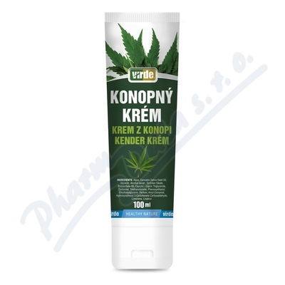 Krém s obsahem oleje ze semen konopí pro péči o kůži, obzvláště vhodný pro mazání kůže nad klouby, svaly a šlachami.