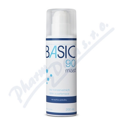 BASIC90 mast je masťový základ, který zlepšuje stav pokožky tím, že jí dodává tuky. Pokožku promašťuje, posiluje její přirozené ochranné mechanismy, zabraňuje úniku vlhkosti z pokožky. Je bez parfemace a hypoalergenní. Neobsahuje parabeny.
