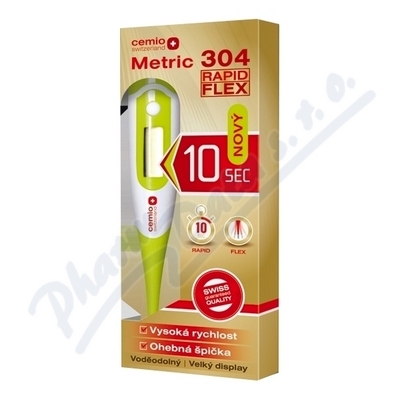 Cemio Metric 304 Rapid Flex Teploměr digitální ČR/SK s alarmem měřící rozsah: 32 °C - 42 °C. Vysoká rychlost měření a ohebná špička. Dobře čitelný display, voděodolný.