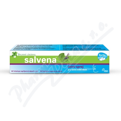 Bylinný ústní sprej Salvena forte díky obsahu extraktu šalvěje lékařské pomáhá při problémech s dásněmi. Posiluju, regeneruje dásně a sliznici dutiny ústní. Spolu s extraktem ze zeleného čaje, mentholu a máty peprné potlačuje nepříjemný zápach z úst.