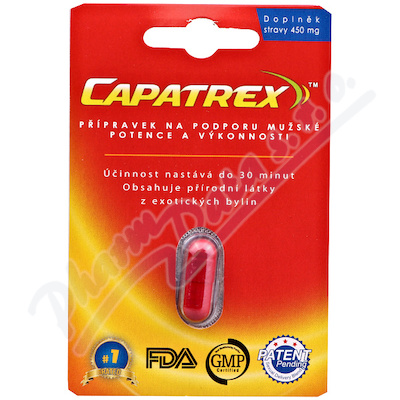 Capatrex obsahuje výtažek z exotických bylin, které napomáhají mužské potenci a výkonnosti. Účinnost nastává do 30 minut.