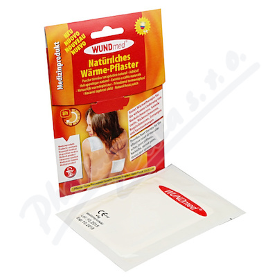 Hřejivá náplast WUNDmed přináší působením tepla účinnou úlevu od bolestí svalů, ztuhlých kloubů, bolestí zad, menstruačních bolestí, jakož i úlevu v případě natažených šlach a podvrtnutých kloubů. ZDRAVOTNICKÝ PROSTŘEDEK. Čtěte pečlivě příbalový leták.