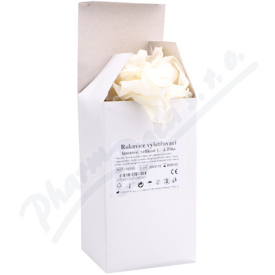 Jednorázové rukavice latexové, lehce pudrované. Slouží zejména jako ochrana zdravotnického personálu při vyšetřování pacientů.