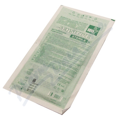 Chirurgické rukavice DONA SENSITIVE microrough, sterilní, AQL 0,65. Certifikovány analýzou FITkit TESTING SERVICES, 100 % elektronickým testováním s nízkým obsahem proteinů, sterilizovány gama zářením.