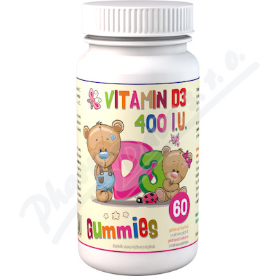 Vitamin D3 400 I.U. Multi Gummies je doplněk stravy ve formě pektinových bonbónů s malinovou příchutí balené po 60ks.