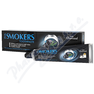 EVA Bělící zubní pasta Charcoal čistí zuby a napomáhá odstranit žluté zbarvení zubů. Ideální pro bezpečné domácí čištění zubů, vhodná nejen pro kuřáky. Příjemná mentolová chuť osvěžuje dech, napomáhá odstranit i zubní plak.