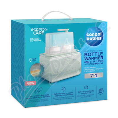 Elektrický ohřívač a sterilizátor lahví Canpol babies 7v1 s termostatem a lampou. Nabízí 7 různých režimů. Kapacita pro dvě lahve/skleničky. Ohřáté mléko do 2-3 minut. Termostat udrží teplotu mléka/jídla až po dobu 10 hodin.