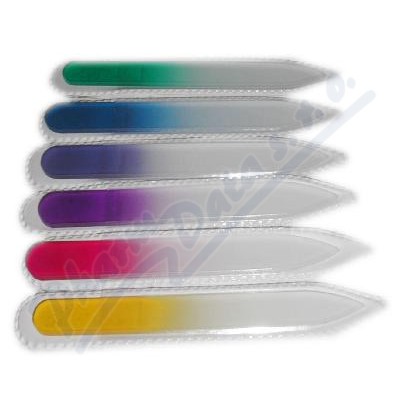 Skleněný pilník A-50290 dlouhý 9 centimetrů slouží k ošetření nehtů. Pro domácí i profesionální použití.